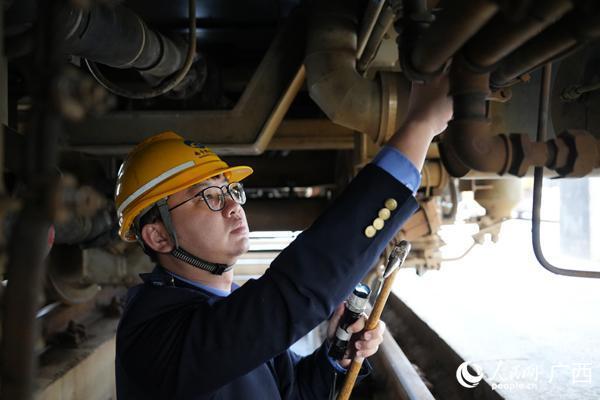 杨赡喻在对接触网作业车管路进行检查。人民网记者 王勇摄